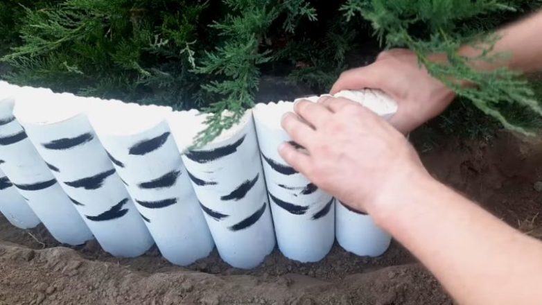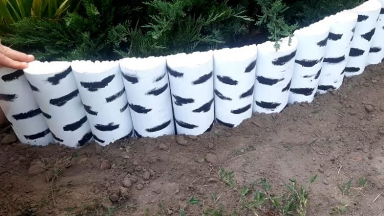 Трубу ПВХ распилите на 4 равные части. Длину регулируйте сами — насколько высокий бордюр вы хотели бы. Края зачистите наждачкой.