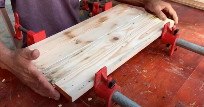 Также нужно будет склеить деревянные щиты, из которых будем вырезать сиденье и спинку кресла.