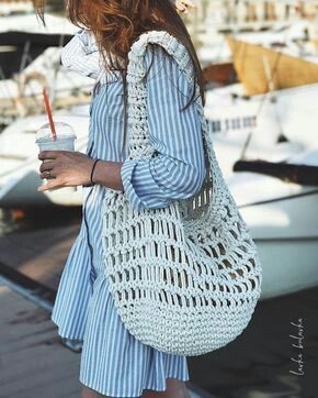 Сумки-макраме — идеальный вариант для лета: легкие авоськи, объемные пляжные сумки, плотные, или, напротив, ажурные аксессуары — выбор за вами.