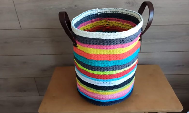 Садовая сетка и старые футболки — материалы, из которого можно сделать чудесную корзину для дома. Яркая, бюджетная корзина будет отлично смотреться в детской комнате и подойдет для хранения игрушек или вещей малыша. Работа по изготовлению корзины очень простая и увлекательная.