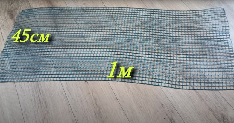 Чтобы получить трикотажную нить просто растягивайте ленту. Подготовьте несколько клубков трикотажной нити разного цвета. Для изготовления корзины потребуется садовая сетка шириной 45 см и длиной 1 метр.
