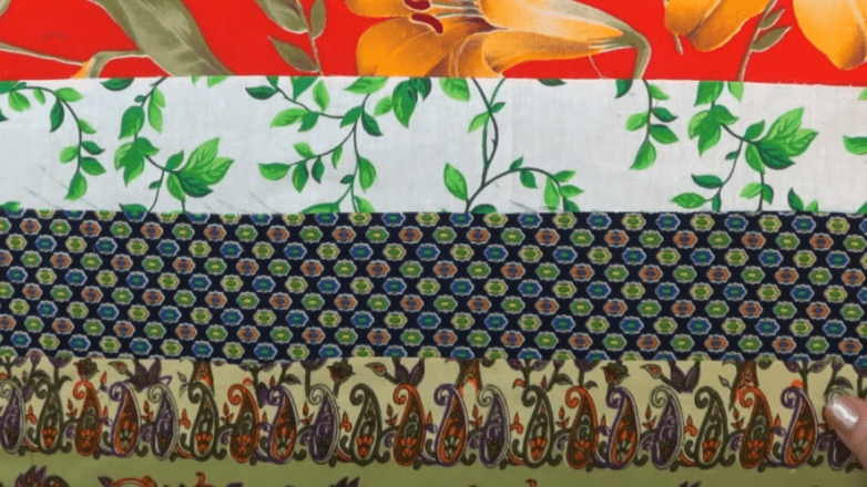 Длина сборного полотна может быть разной. Здесь все напрямую зависит от способа стыковки треугольников и желаемого рисунка. Минимальный расход ткани будет при нарезке по принципу основание-вершина. Главное помнить, что все углы равностороннего треугольника равны 60 градусов.