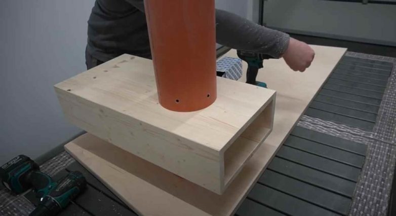 В качестве второй опоры для столешницы используется канализационная пластиковая труба диаметром 100 мм.