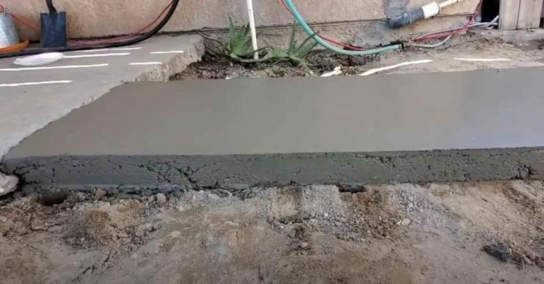 Когда раствор немного схватится, убираем деревянные колышки с опалубкой, и замазываем пустоты по бокам дорожки.