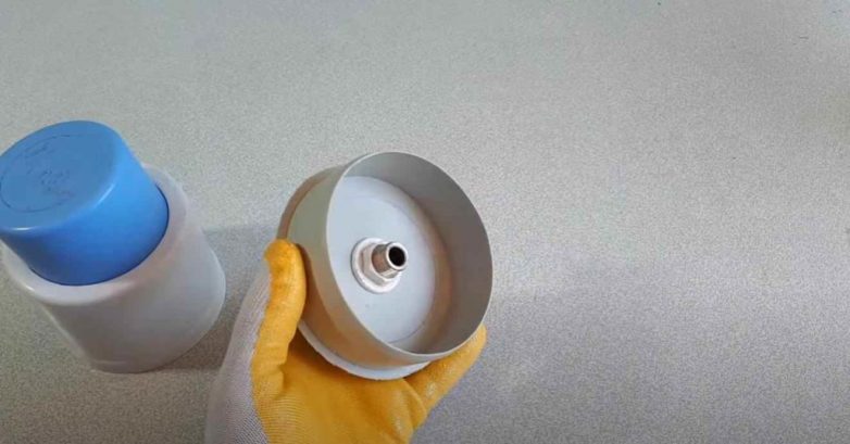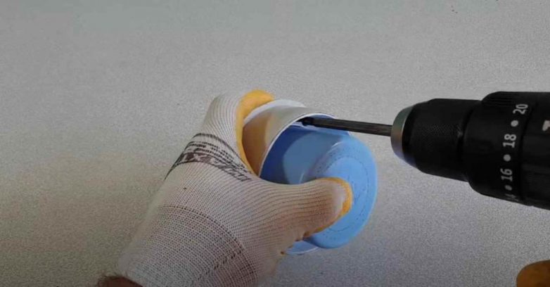 Далее нам понадобится пластиковая заглушка для канализационной трубы. Делаем разметку, и сверлим в центральной части отверстие.