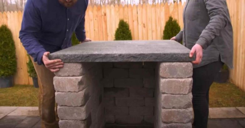На следующем этапе на опорную часть укладывается каменная плита. Либо же можно сделать «перекрытие» из кирпича. Также, как вариант, подойдет и железобетонная плита.
