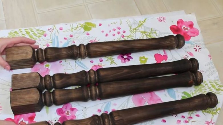Ножки покрыть морилкой, прикрепить к ящику.
