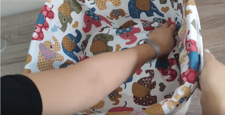 Для внутренней части получившейся корзинки шьем чехол-мешок и вкладываем его внутрь.