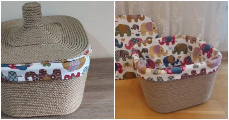 Ведь их можно превратить вот в такую симпатичную плетеную корзинку для хранения!