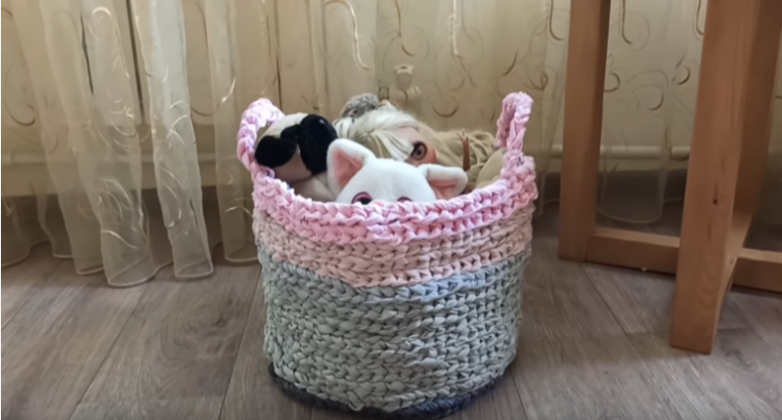Практически каждой вещи можно дать вторую жизнь, в том числе и старым простыням и другим тканям. Ведь из них можно сделать вот такую удобную, оригинальную и симпатичную корзинку для хранения, которая в магазине стоит совсем не дешево. Это довольно просто и каждый желающий справится с таким проектом.