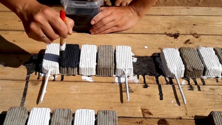 Через одну секцию покрасить акриловой краской двух разных цветов на ваше усмотрение. Для долговечности желательно также покрыть лаком.
