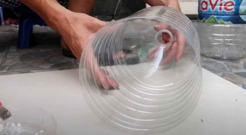 Для этого нам потребуются пластиковые баклажки объемом 5-6 литров. У каждой баклажки необходимо будет отрезать дно.