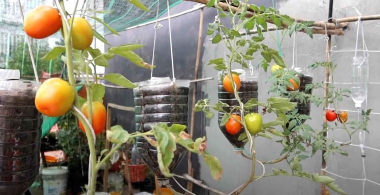Как сделать вертикальные грядки для выращивания томатов вверх тормашками