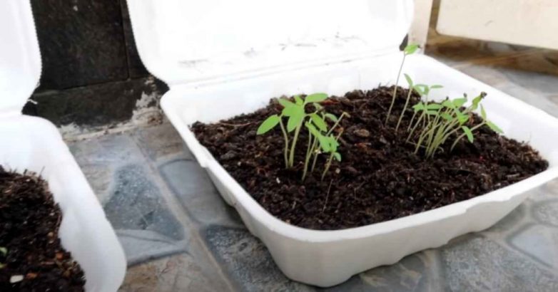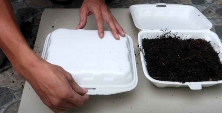 Чтобы вырастить рассаду томатов, нам потребуются одноразовые пищевые контейнеры из пенопласта — они теплые, а потом отлично подойдут для наших целей.С помощью электропаяльника в нижней части контейнера необходимо будет сделать несколько отверстий для дренажа.