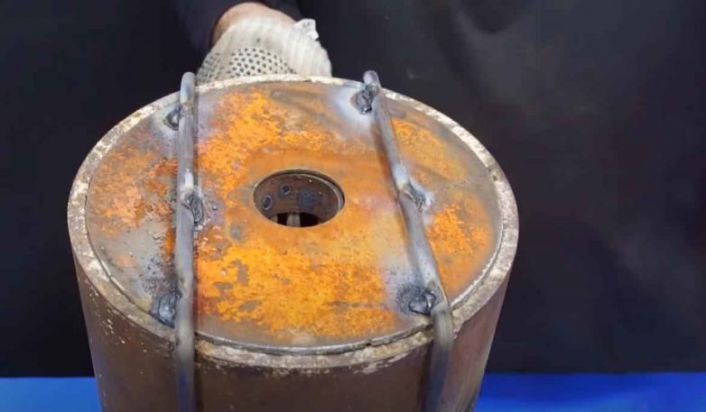 Особенность самодельной печки заключается в том, что пламя на выходе получается очень мощным, однако при этом не нужно использовать вентилятор или компрессор для принудительного нагнетания воздуха внутрь топочной камеры.