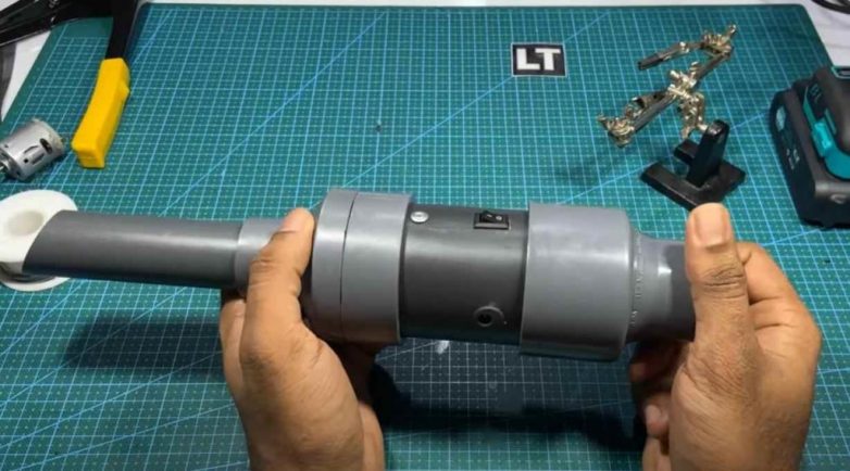 Процесс изготовления мини-пылесоса из пластиковой трубы