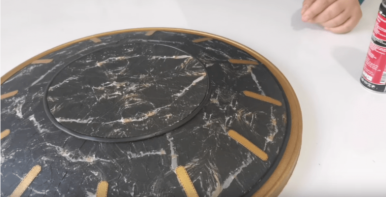 Теперь можно оформить циферблат цифрами, правильно установить их поможет уже имеющийся часовой механизм. В нашем случае вместо цифр использованы лаконичные насечки, вырезанные из бумаги и покрытие краской и лаком.