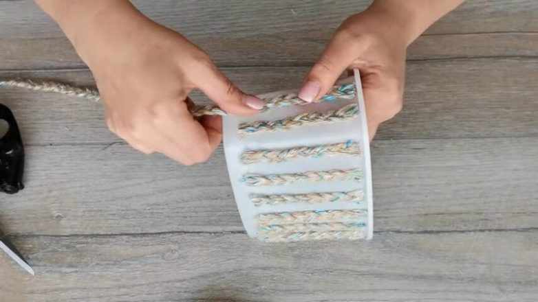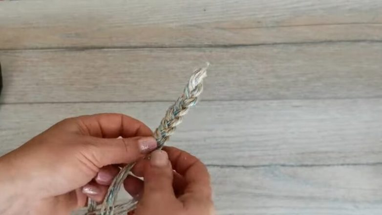 Ещ1 один вид органайзеров из того же материала — подвесные. Из джута вновь сплетите косичку.