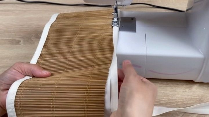 Расправляем будущее дно, и сшиваем с бамбуковым кольцом следующую сторону, и т.д.