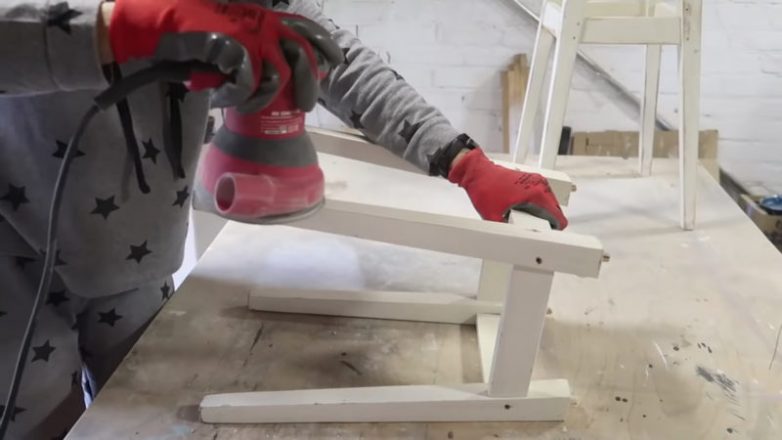 Зачистите ножки стульев и сидушки с помощью шлифовальной машины.