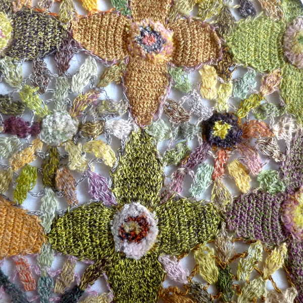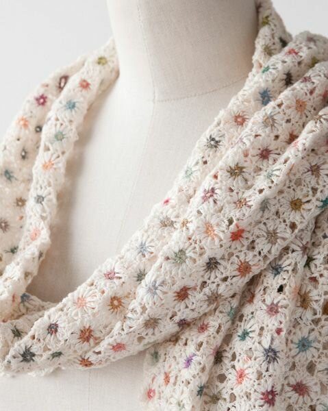 Или вот, например, дизайнерские цветочные шали от Софи Дижар (Франция). Ювелирная работа крючком, тоненькая ниточка, спокойная гамма и сногшибательный эффект.