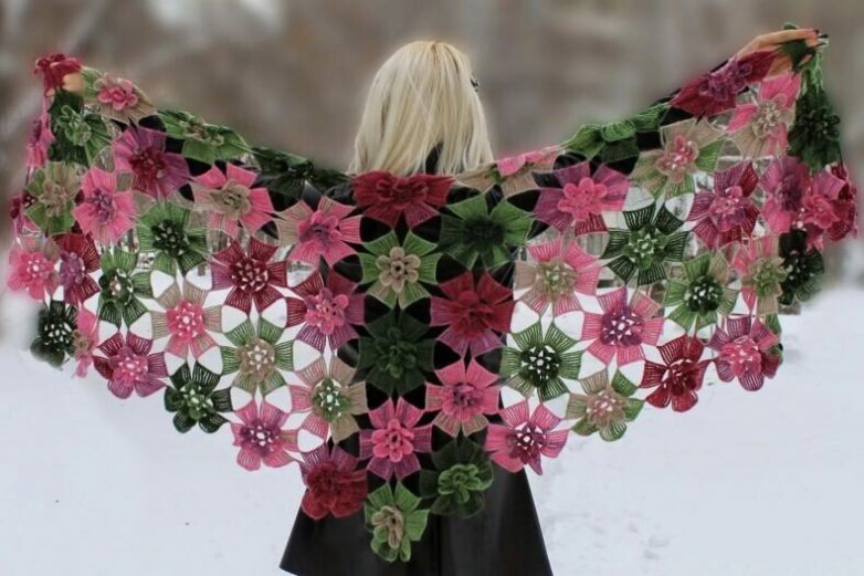 Мне очень нравятся цветочные шали крючком. Яркие и нежные одновременно, посмотрите сами: