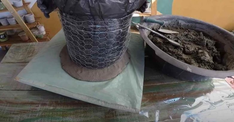 После того как цементный раствор полностью высохнет, необходимо извлечь пластиковое ведро из цветочного горшка.