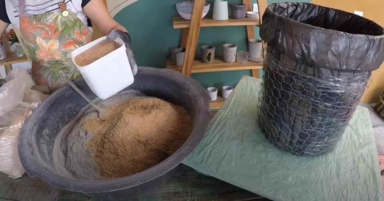 После того как сделали форму для горшка, можно приступать к приготовлению раствора. Для этого нам будут нужны следующие материалы: