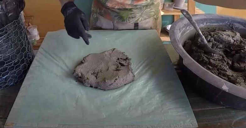 На следующем этапе устанавливаем на лепешку раствора форму, и обмазываем ее со всех сторон приготовленным раствором.