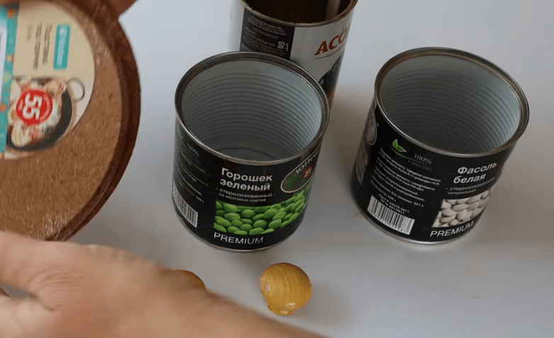 Подготавливаем нужное количество банок. Подгибаем выступающие острые края к стенкам, избавляемся от наклеек и остатков клея, а затем обезжириваем снаружи.