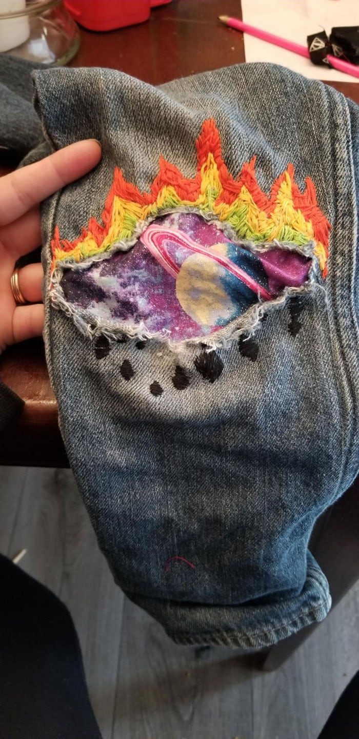 Пятно, которое не отстирывается, дырочка на самом видном месте, следы от маркера, затяжки….все это не повод прощаться с вещью, это повод найти креативный способ, чтобы починить ее.