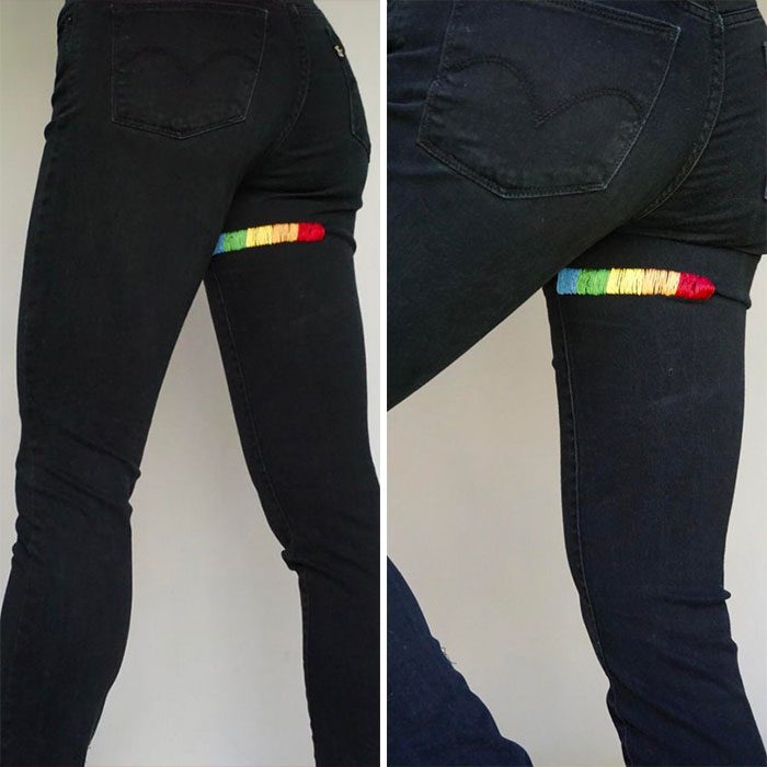 Справиться с неприятной проблемой поможет вышивка, заплатки, аппликации и другие художественные детали, которые подарят испорченной вещи вторую, более яркую жизнь. Делимся с вами креативными примерами обновления даже самых безнадежно испорченных вещей.