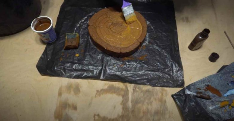 А чтобы плитки смотрелись поинтереснее — верхнюю часть задекорируем под спил дерева. Процесс этот несложный, но творческий.