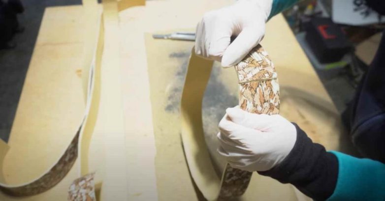 Для изготовления самодельной формы можно использовать самые разные материалы. В данном случае мастер использует остатки старого линолеума.