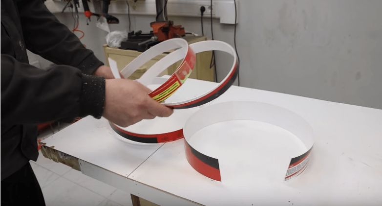 Далее берем фанерный лист и вырезаем из него заготовки по количеству секций. Придаем заготовкам нужную форму, в нашем случае — полукруга.