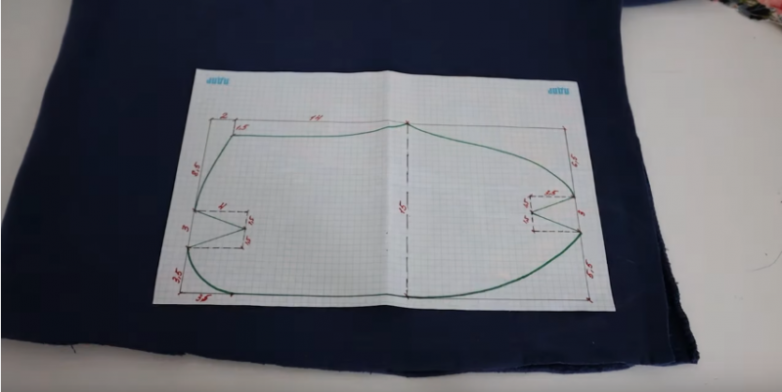 Затем берем выбранную кофту, начать можно с рукавов, фиксируем на ткани выкройку и вырезаем. В итоге у вас должна сразу получиться двойная деталь, поэтому ткань должна быть сложена вдвое. А чтобы не создавать дополнительный швов, лучше всего разместить выкройку так, чтобы сгиб на ткани приходился на линию подошвы.
