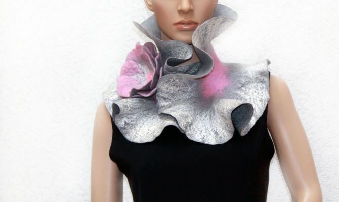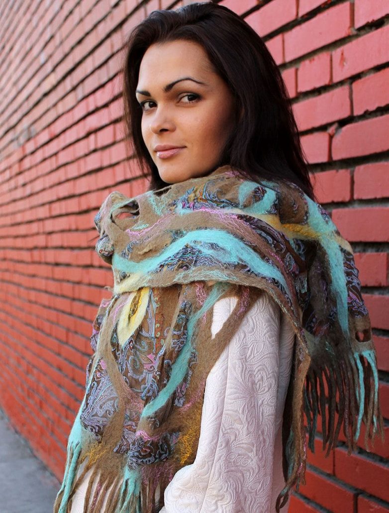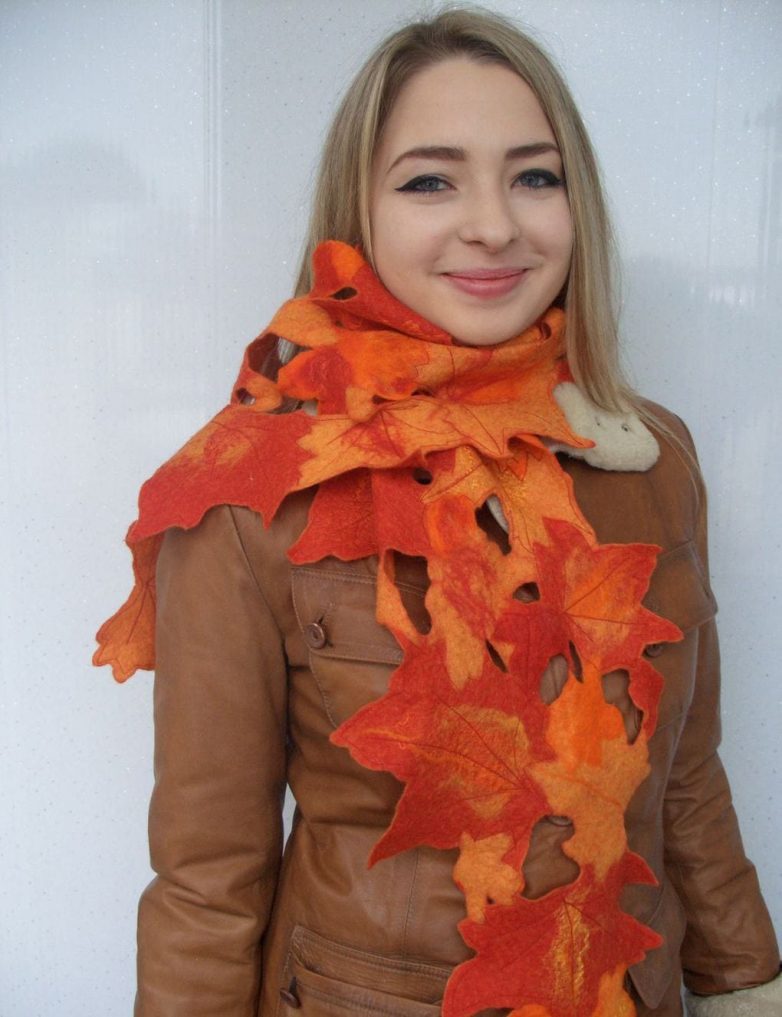 Красоту валяных шарфов не стоит прятать под одеждой. Их надевают поверх пальто, курток, платьев и свитеров, создавая неповторимые образы, которые привлекают внимание окружающих.