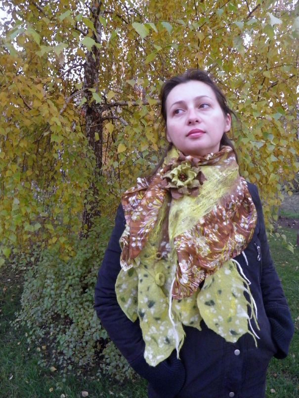 Сделать осенний образ более изысканным и стильным помогут роскошные валяные шарфы. Благодаря особой технологии мокрого валяния в жизнь можно воплотить самые смелые дизайны и сложные узоры. Валяные шарфы очень мягкие и неприхотливые в уходе, их можно необычно задрапировать и элегантно уложить на плечах.
