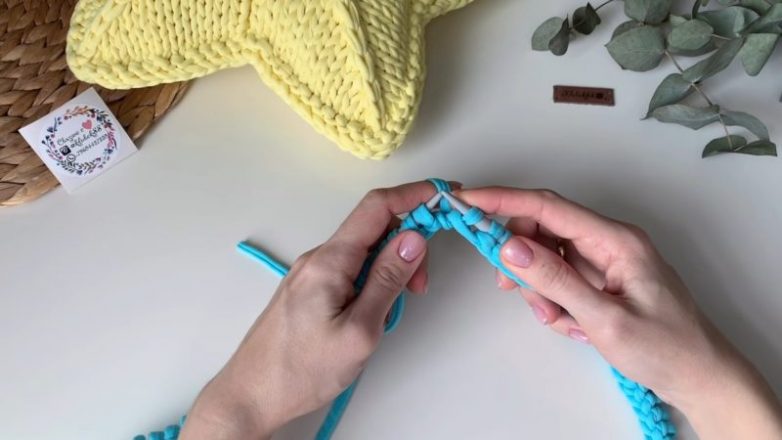 На спицах набрать 110 петель + 1 петля, чтобы замкнуть набор петель в кольцо. Снять дополнительную 1 петлю на вторую спицу и замкнуть набор петель в кольцо. Подушка может быть большего или меньшего размера: для этого первоначально набирайте больше или меньше на 10 петель.