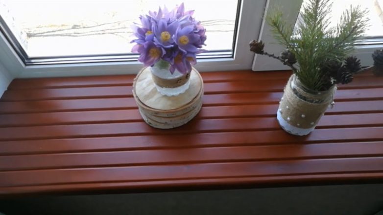 Придать накладке на подоконник декоративный вид поможет обработка маслом, морилкой или краской подходящего цвета.