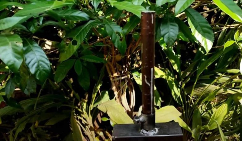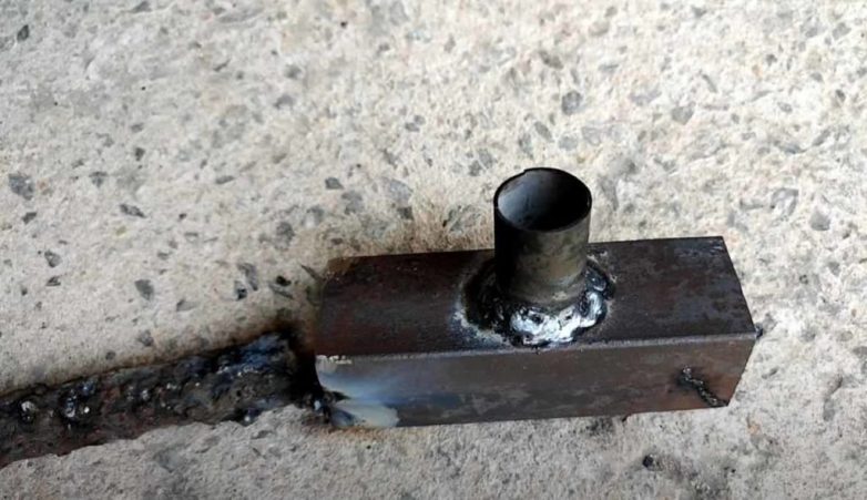 Далее к верхней части втулки необходимо будет приварить кусок листового металла, а к нему — ручку из квадратного прутка.