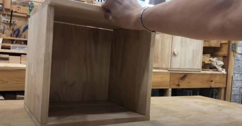 Собираем короб квадратной формы (размеры — на ваше усмотрение), и прикручиваем к нему заднюю стенку. Дверцу пока не крепим.