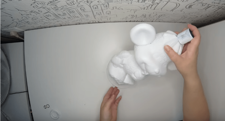 У игрушки-основания убираем все ненужные части, для этого можно воспользоваться паяльником. Также по центру головы игрушки вырезаем отверстие для патрона.