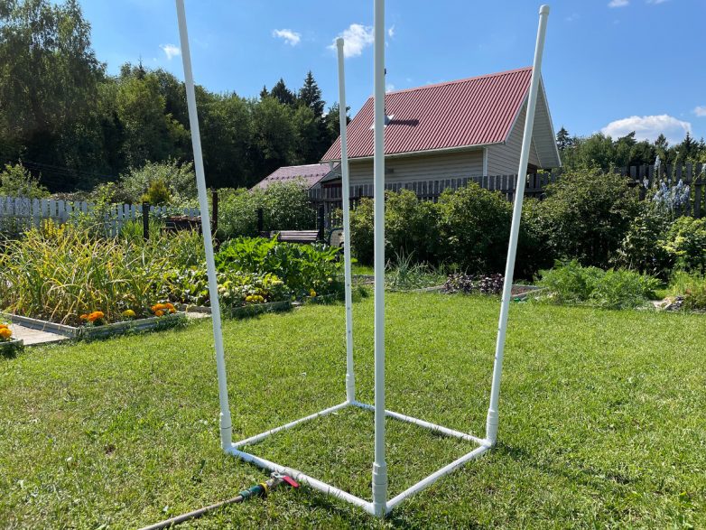 Продолжаем работу. И у меня получается вот такое основание с длиной каждой стороны 700 мм. Этого достаточно даже для взрослого человека. Также я использовал полипропиленовые трубы диаметром 25 мм.