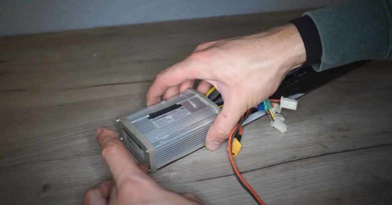 Устанавливаем электронную «начинку» внутрь рамы самоката — в специально подготовленную полость, оставленную в профильной трубе.