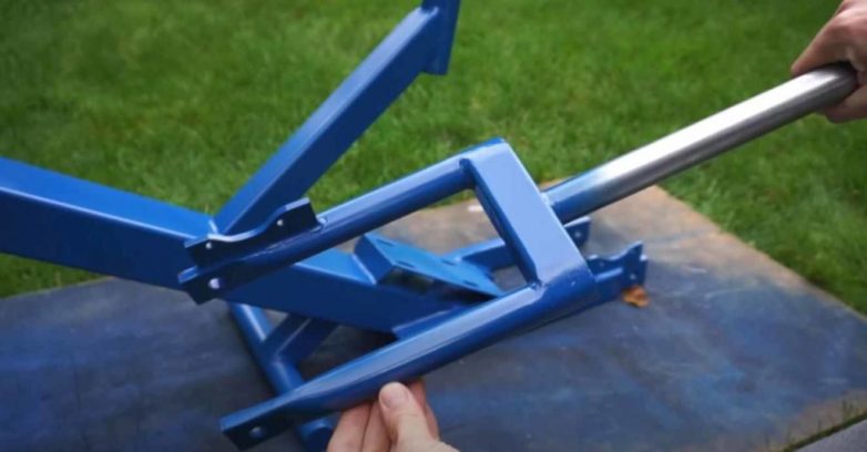 Зачищаем сварные швы болгаркой, после чего красим раму аэрозольной краской. Из металла изготавливаем переднюю вилку. Красим ее.