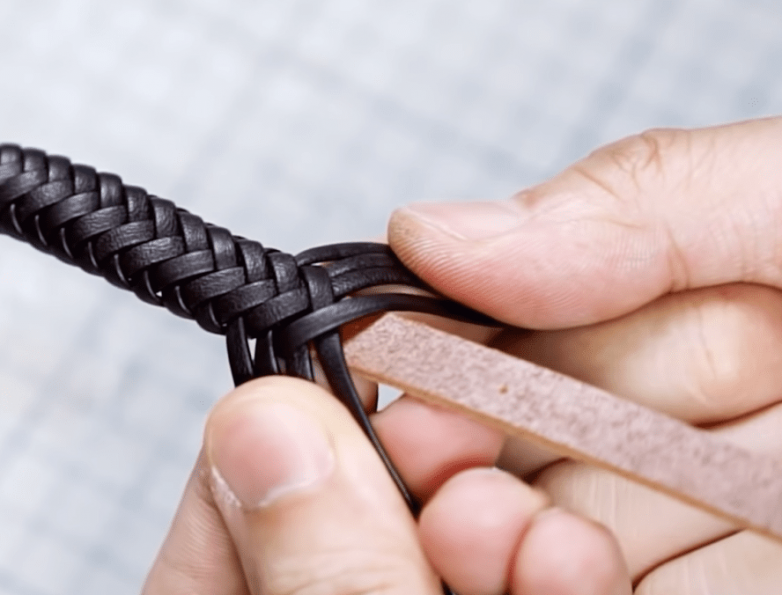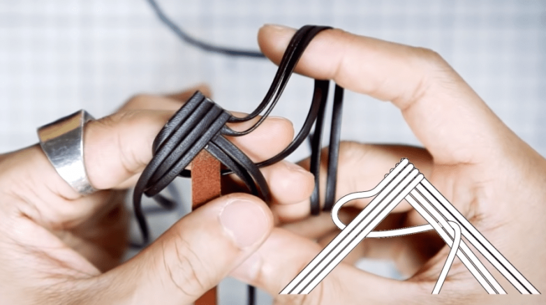 Потратиться придется только на шнур и фурнитуру для застежки, а имея в запасе немного кожи, которую можно распустить на узкие полосы, затрат и вовсе можно избежать. Техника плетения проста и доступна.