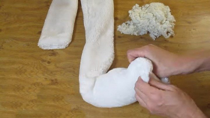 Выворачиваем деталь и набиваем любым доступным наполнителем.