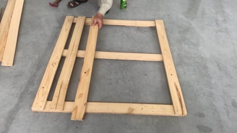 Из разобранных досок от паллет соберите такую промежуточную конструкцию.