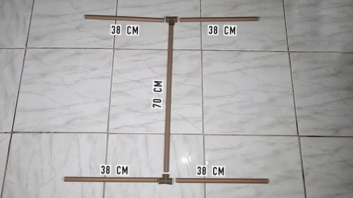 Деталь № 2 состоит из одного обрезка 70 см и четырёх обрезков по 38 см, а также двух тройников. Внимание! Таких деталей понадобится две штуки.